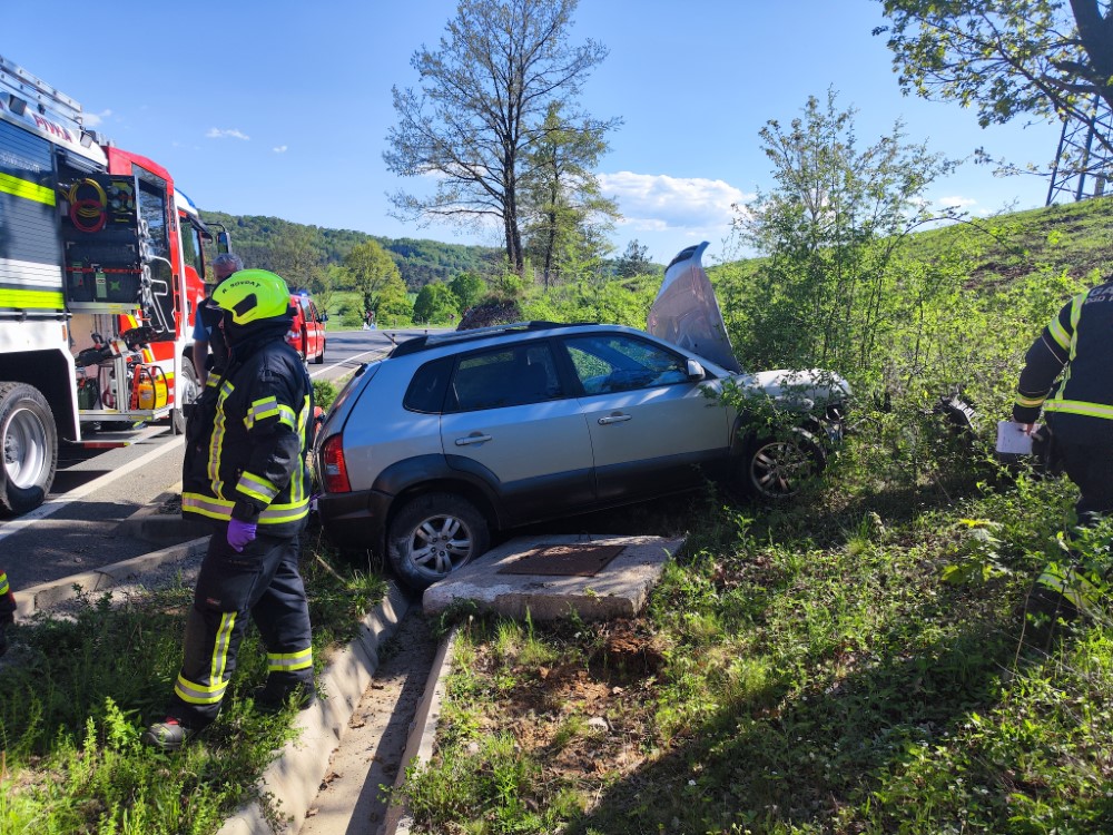 Ob 15:59 je na cesti Ribnica - Pivka pri odcepu za Šmihel voznik zapeljal iz cestišča. Gasilci PGD Postojna in PGD Pivka smo prometno in požarno zavarovali kraj dogodka, odklopili akumulator in nudili pomoč ekipi NMP. Poškodovanega so prepeljali v Izolsko bolnišnico.