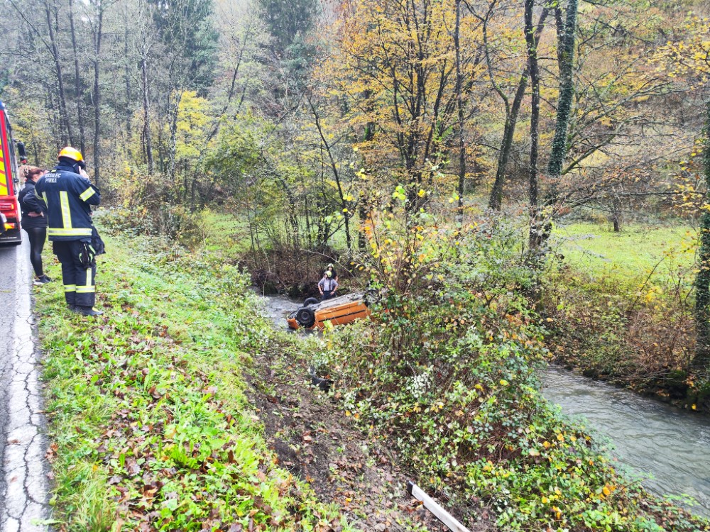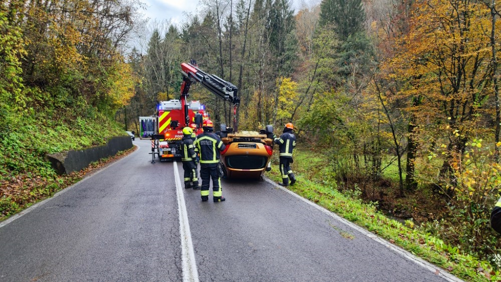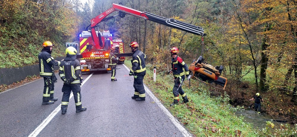 Ob 10.14 je na cesti med Pivko in Ribnico, v občini Pivka, voznica z osebnim vozilom zapeljala iz cestišča, se prevrnila in obstala prevrnjena na streho v potoku. Voznica je sama prišla iz vozila, lažje poškodovana. Gasilci PGD Pivka in PGD Postojna, smo kraj dogodka zavarovali, z avtodvigalom dvignili vozilo iz potoka, ga postavili na kolesa in odklopili akumulator, ter nudili prvo pomoč voznici do prihoda ekipe reševalcev NMP Postojna, kateri so jo dokončno oskrbeli in odpeljali na nadaljnje zdravljenje. Na kraju je bila tudi Policija in dežurni delavec cestnega podjetja CPK Koper.